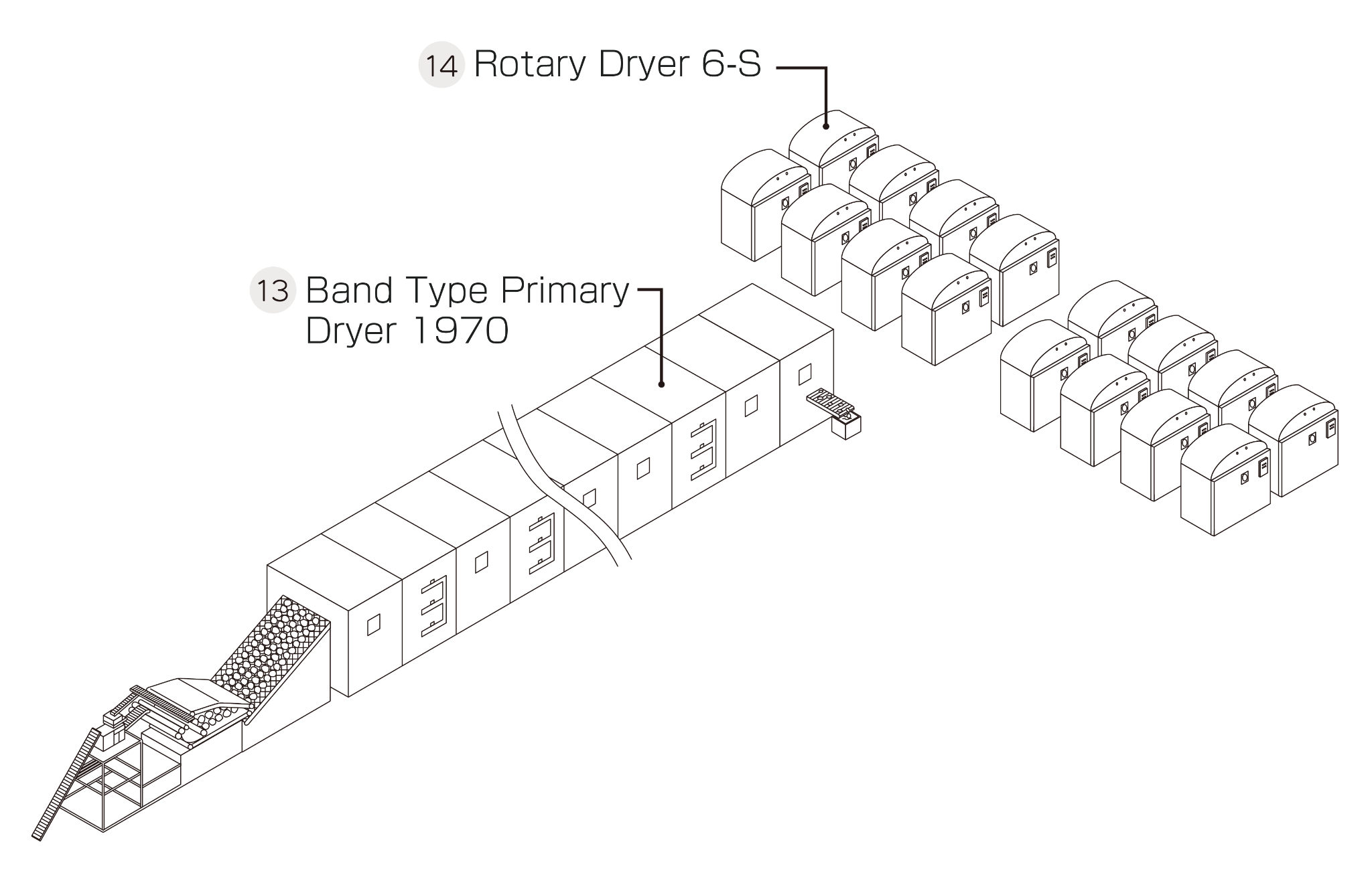 We design and manufacture plant systems that integrate all production processes. Each system is customized to meet the specific applications and needs of our customers.Below are the “Drying” sections of the entire SNBI400 plant process.