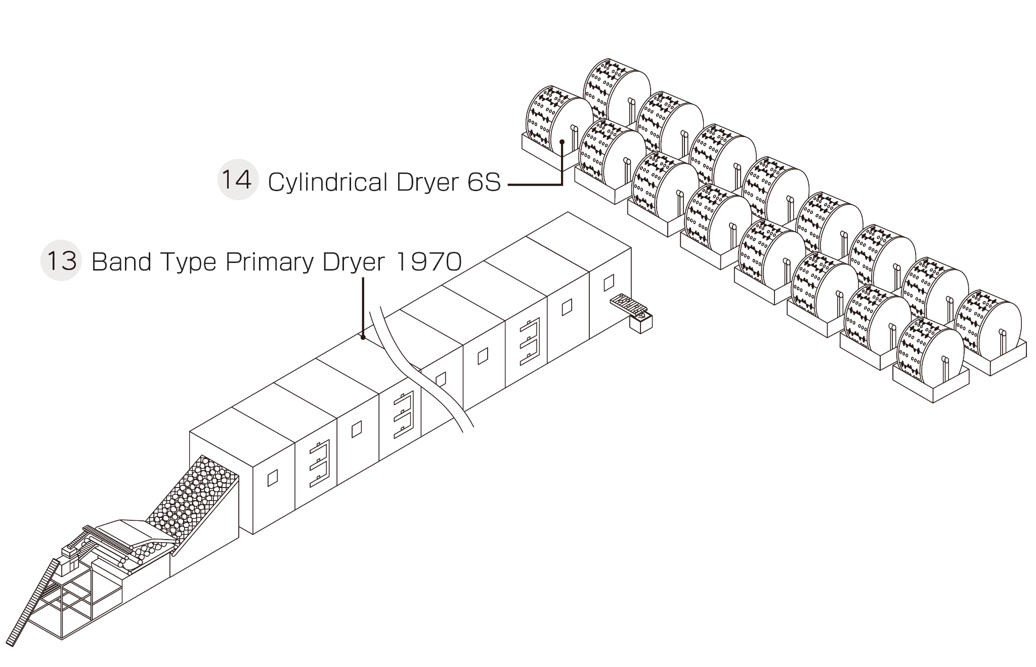 We design and manufacture plant systems that integrate all production processes. Each system is customized to meet the specific applications and needs of our customers.Below are the “Drying” sections of the entire SNF400 plant process.