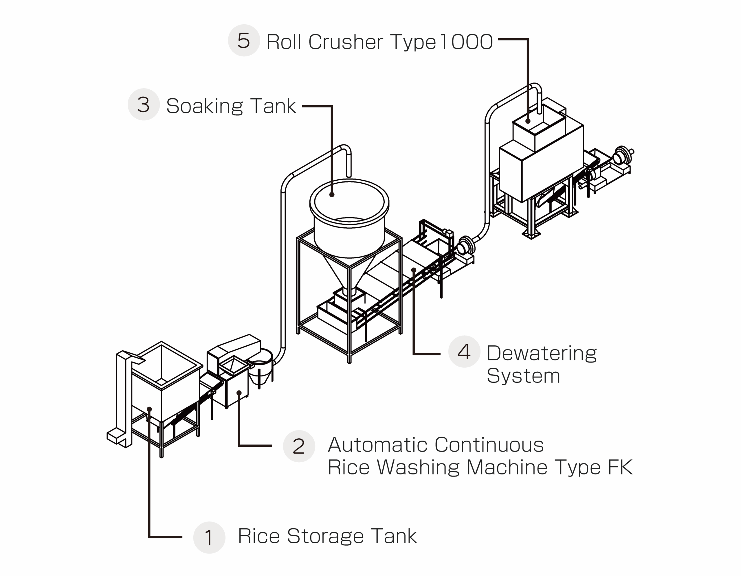 We design and manufacture plant systems that integrate all production processes. Each system is customized to meet the specific applications and needs of our customers.Below are the “Rice Washing,” “Soaking,” and “Milling” sections of the entire Arare Rice Cracker Production System process.